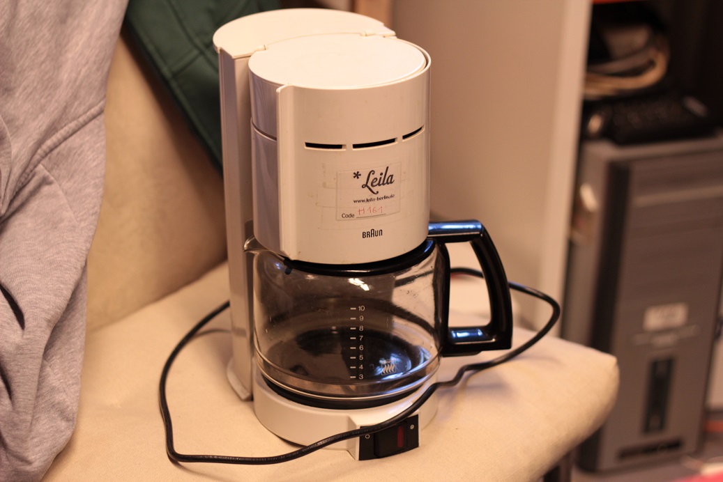 Kategorie: Haushalt Beschreibung: Weißer Kaffeeautomat der Firma Braun. Regal: 2 Datum hinzugefühgt: 2017-05-15 Objekt verleihbar